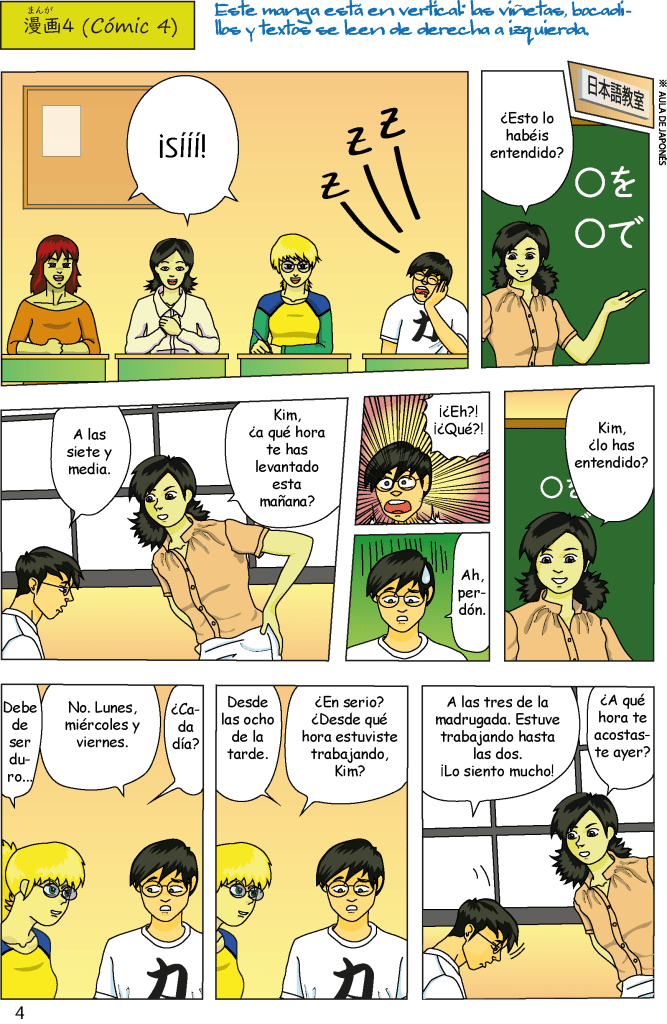 Correspondiente a la unidad 2, parte I: presente y pasado de oraciones predicativas; hora en la que se produce una acción puntual, hora desde la que o hasta la que tiene lugar una acción que se prolonga en el tiempo.