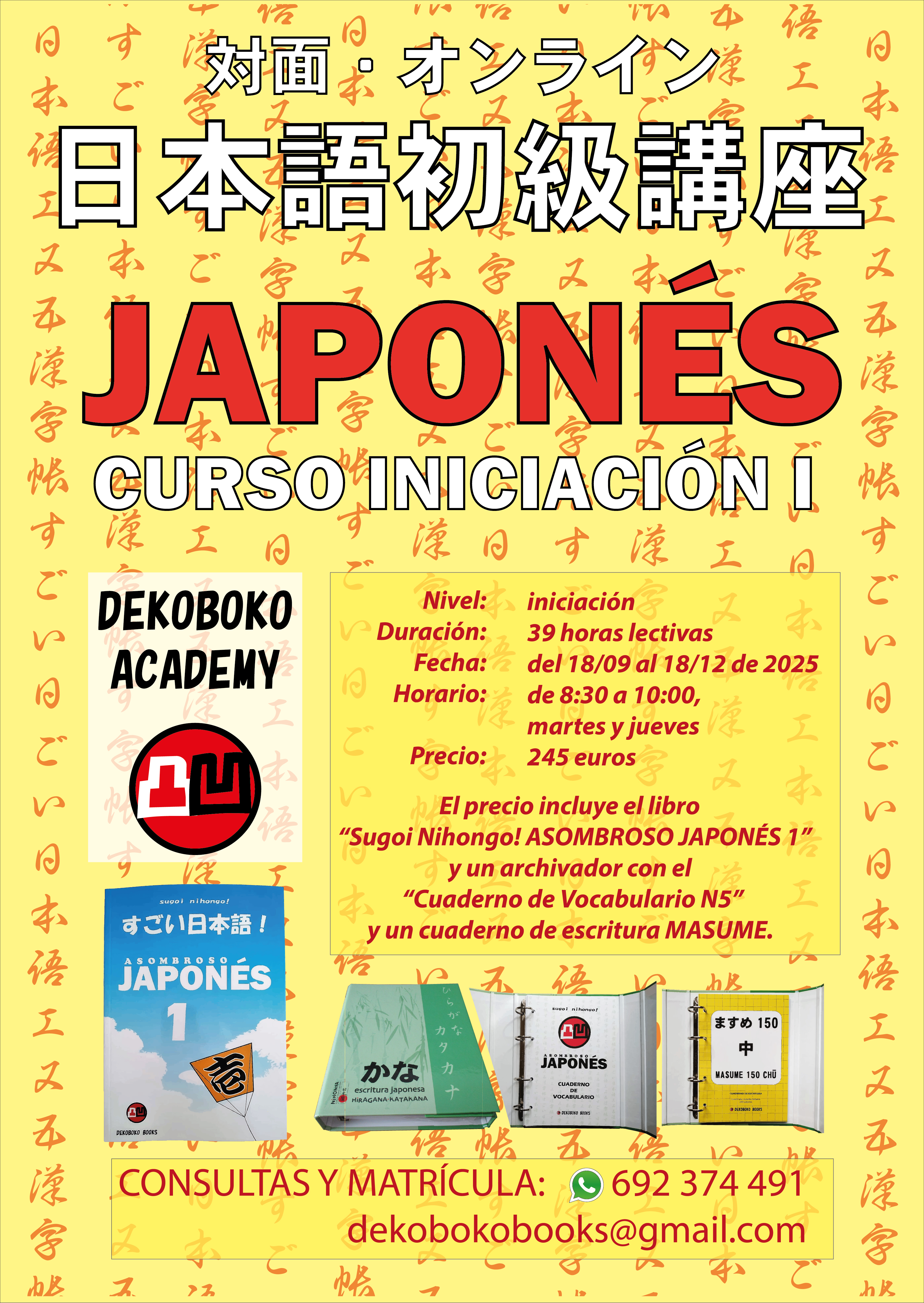 Nivel: iniciación (empezamos de cero; aprenderemos hiragana, katakana, vocabulario, conversación y gramática básicas)