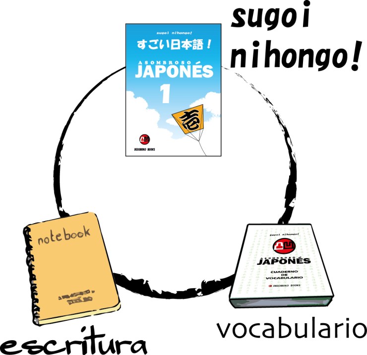 Para realizar este curso de japonés por el que el libro te irá guiando, necesitarás un cuaderno de escritura y un cuaderno de vocabulario.